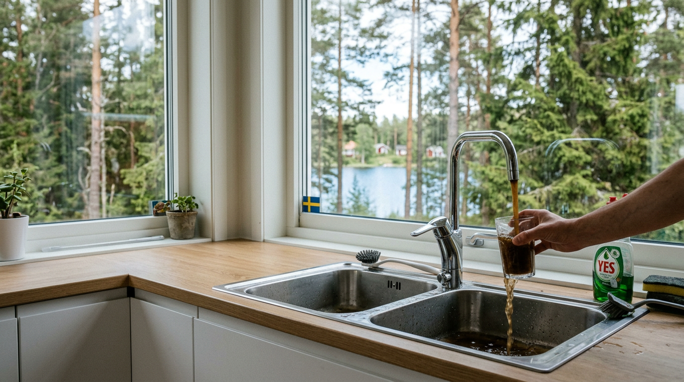 Om vattnet är brunt rekommenderas att spolar ur. Gör det gärna med vattenslang för att inte fylla infiltrationen i onödan.